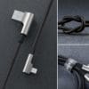 تعمل سترة كابل النايلون المضفرة وموصلات سبائك الزنك على تعزيز مقاومة التآكل. تتيح لك الموصلات بزاوية 90° استخدام جهازك بشكل مريح أثناء شحنه. كما أنها تقلل من الإجهاد والضغط على الكابل.