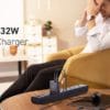 هذا الشاحن المزدوج المنفذ PD الجدار حزم ما مجموعه 32 W من الطاقة في شكله المضغوط.