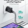 – 32 واط إجمالي الناتج: مزود بمنفذ 3.0 لتوصيل الطاقة بقدرة 20 واط ومنفذ USB بقدرة 12 واط، يدعم هذا الشاحن الشحن المتزامن لجهازين