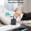 – شحن عالي السرعة: شحن سريع لجهاز iPhone SE أو iPhone 12 Pro Max أو أي أجهزة أخرى متوافقة تعمل بالطاقة USB-C مع توصيل طاقة بقدرة 20 وات