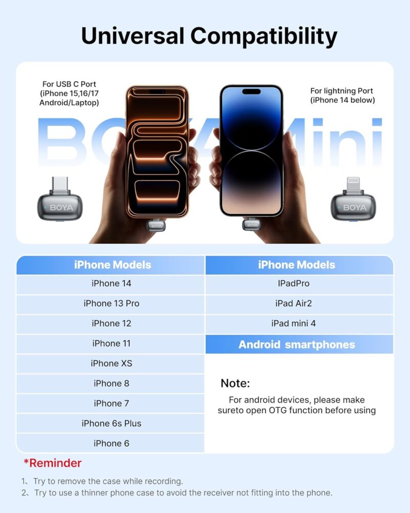 Weighing in at a mere 5 grams – the same as two pennies – the BOYA mini 2 is the lightest and most compact microphone you can get. Its streamlined design seamlessly blends with your clothing for complete concealment and all-day comfort