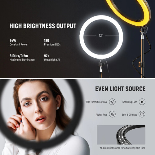 NEEWER RH12B 12INCHES HIGH POWER RING LIGHT WITH LIGHT STAND KIT