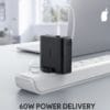 PA-D5 is a new Power Delivery wall charger that showcases Dynamic Detect. It charges a single USB-C device at up to 60W (with the second port) or intelligently shares that power when charging a USB-C phone and laptop simultaneously (at up to 18W + 45W).