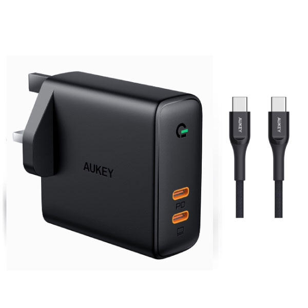 Dynamic Detect: Augmented with AUKEY Dynamic Detect, the second USB-C port can output the full power of the charger with 60W Power Delivery when used on its own, and 45W Power Delivery when both ports are used together.